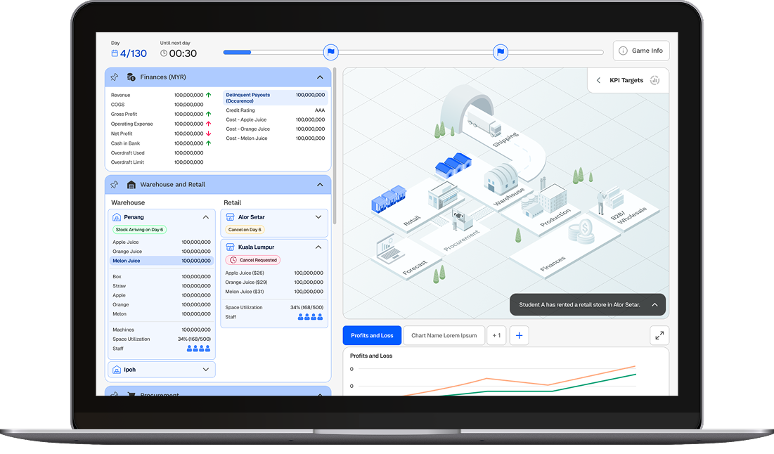 Make business learning more engaging by integrating simulations into your courses. UniexLab helps reinforce theory through hands-on decision-making, fits seamlessly into business, management, and MBA programmes, and offers ready-to-run modules with built-in analytics.